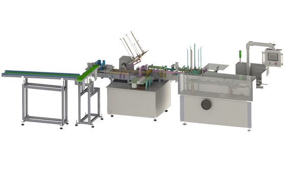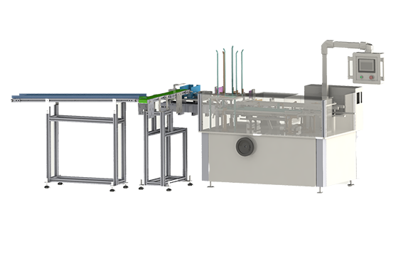 該機廣泛應(yīng)用于化妝品行業(yè)的面膜、眼膜的自動裝盒,也適用于類似該物料形狀的自動裝盒。
