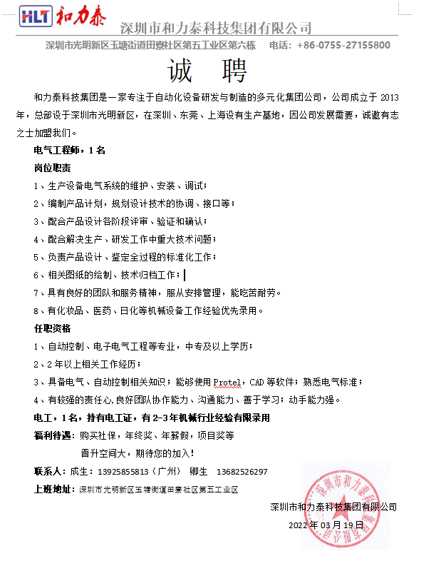 深圳市和力泰科技集團有限公司是一家專注于自動化設備研發與制造的多元化集團公司,公司成立于