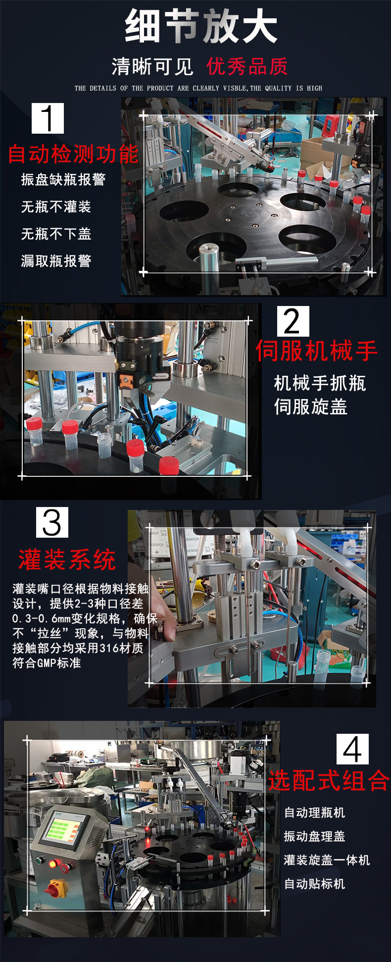 核酸試劑灌裝旋蓋一體機采樣管灌裝生產線病毒檢測試劑灌裝貼標機