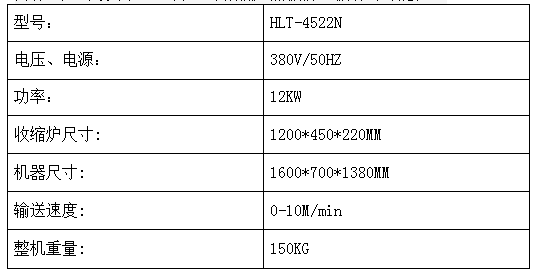 本機以下特點不銹鋼發(fā)熱管,使用壽命長。大功率風機2個,保證足夠循環(huán)風量,收縮效果好。原裝進口隔熱廉,大大減少熱能損耗。特別設計的雙層內膽風道設計,使產品受熱更加均勻。電子無級變速,調節(jié)方便。溫控面板采用電子數顯器。機器收縮效果穩(wěn)定可靠。收縮薄膜收縮時會產生一定的拉力,可把單個或一組要包裝的物品包緊起到繃緊的作用,本產品可廣泛用于各種小產品的包裝。如:彩盒、電子產品、平板電腦、手機、電池、藥盒、文化用品、食品、五金、日用百貨、化工、一次性餐具等物體的熱收縮包裝。包裝之后的產品能密封、防潮、防撞擊。