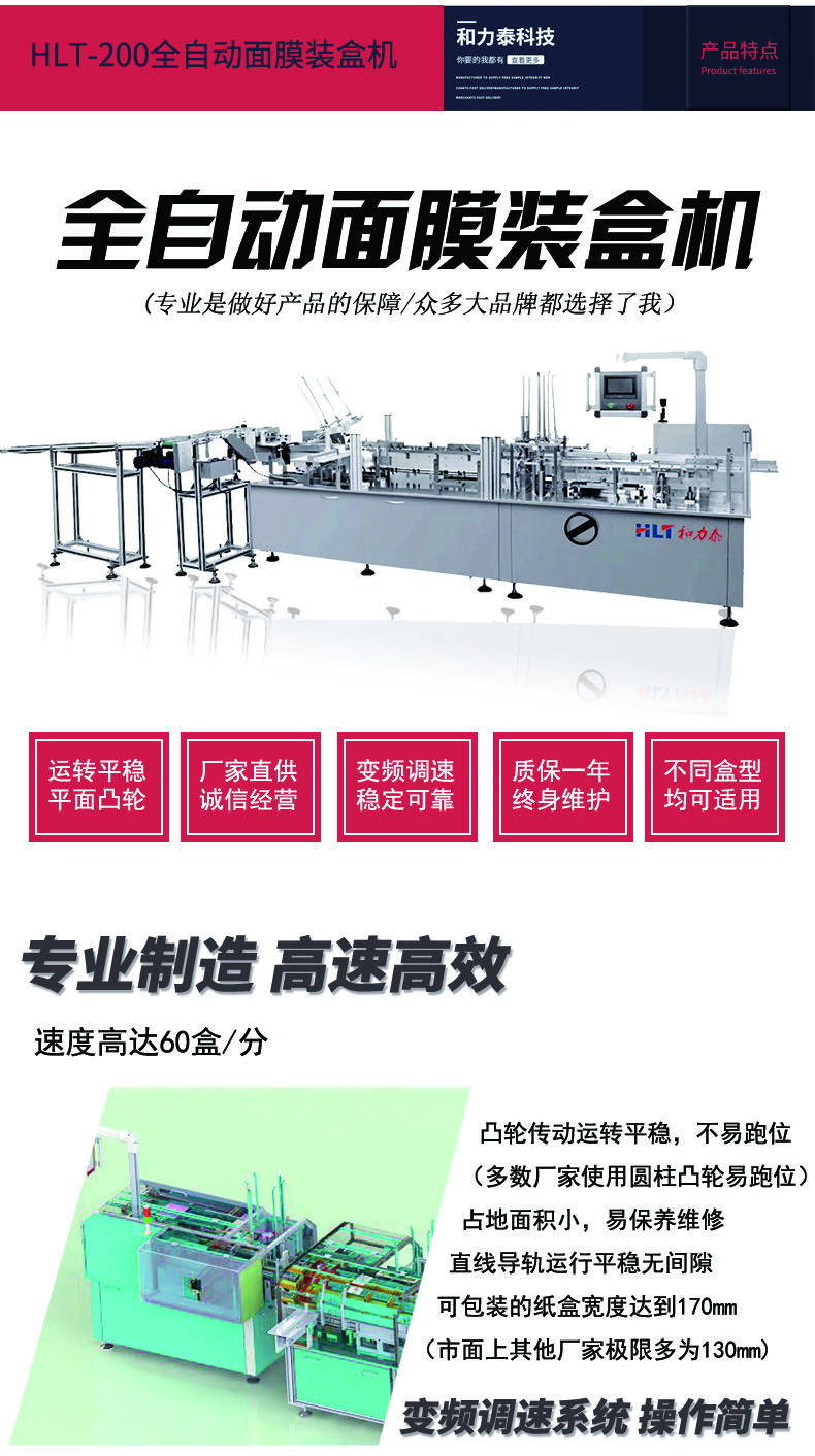 和力泰全自動面膜水乳膏霜裝盒機,從場地空間,用人成本,設(shè)備產(chǎn)能綜合出發(fā),給您提供一站式灌包方案。