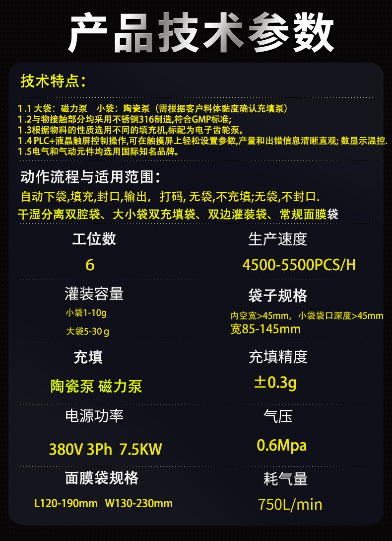 自動(dòng)下袋、自動(dòng)充填、自動(dòng)封口、成品輸出