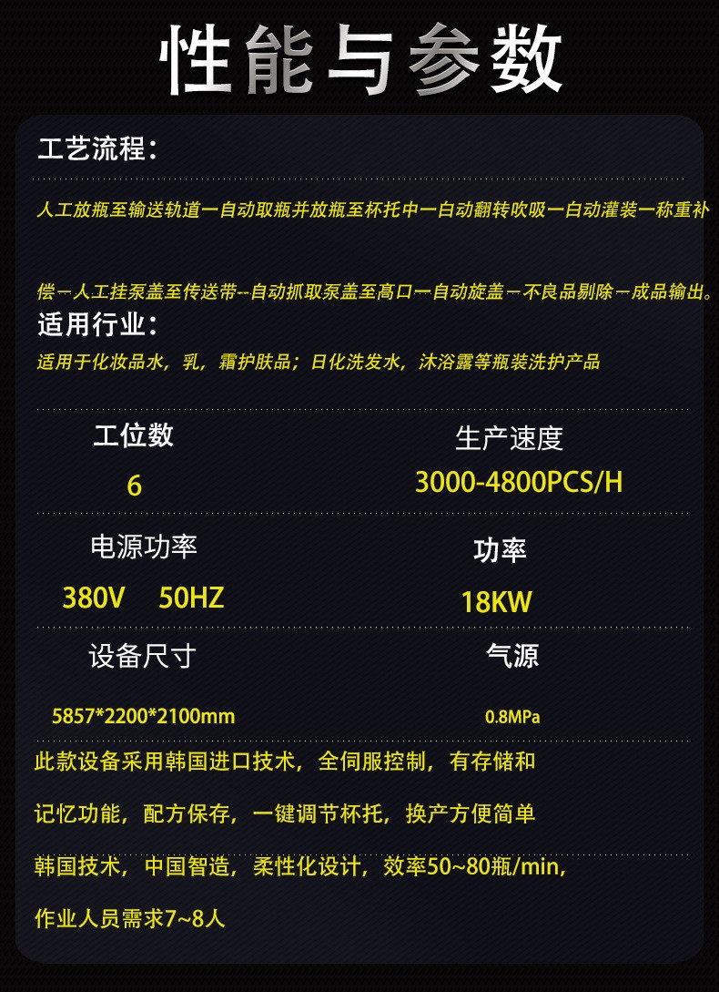 ③ 灌裝量:100-1000mL,灌裝精度:±0.5%,最大粘度:20000CPS